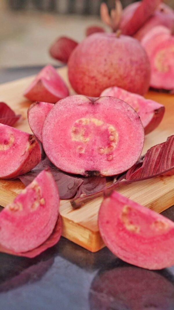 Black Diamond Guava (Psidium guajava) is a premium, eye-catching guava variety that combines exotic looks with powerful health benefits. Its deep blackish-purple skin and ruby-red flesh make it a standout both visually and nutritionally. Whether you’re a backyard gardener or a nursery owner, this guava offers style, substance, and strong market demand.